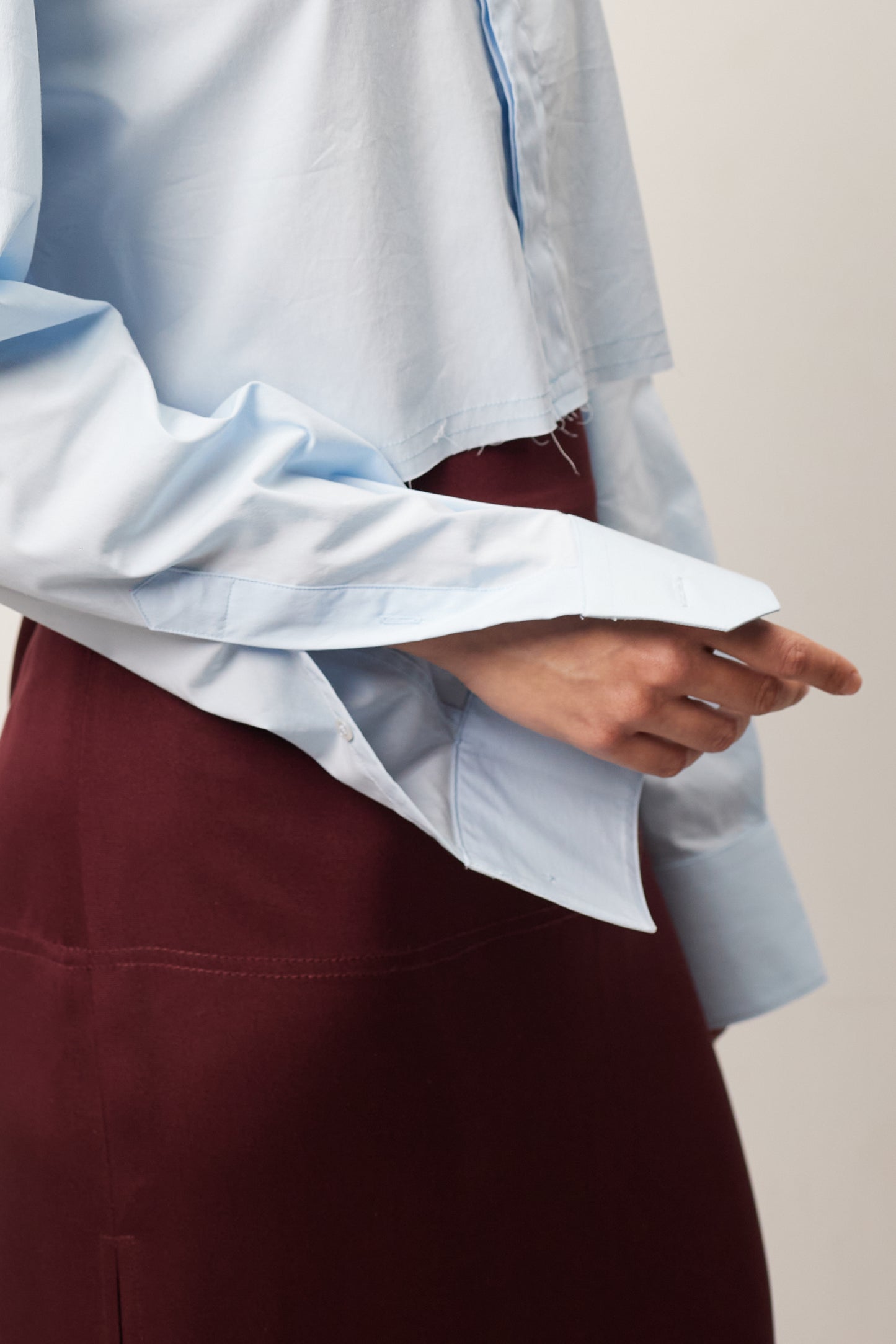 Cropped shirt crafted from crisp cotton poplin with a regular fit in sky blue.