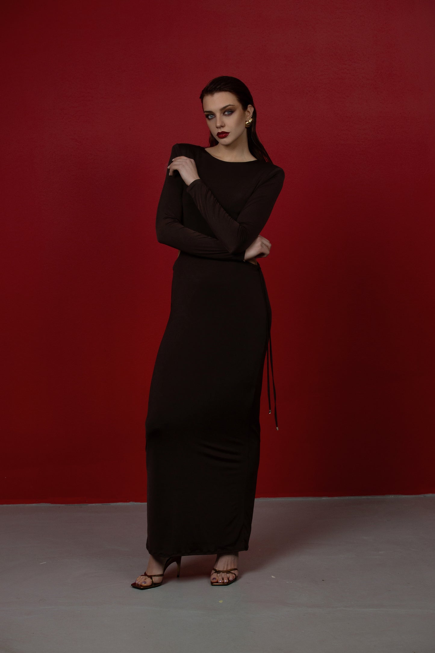 KARINA BROWN CUTOUT DRESS