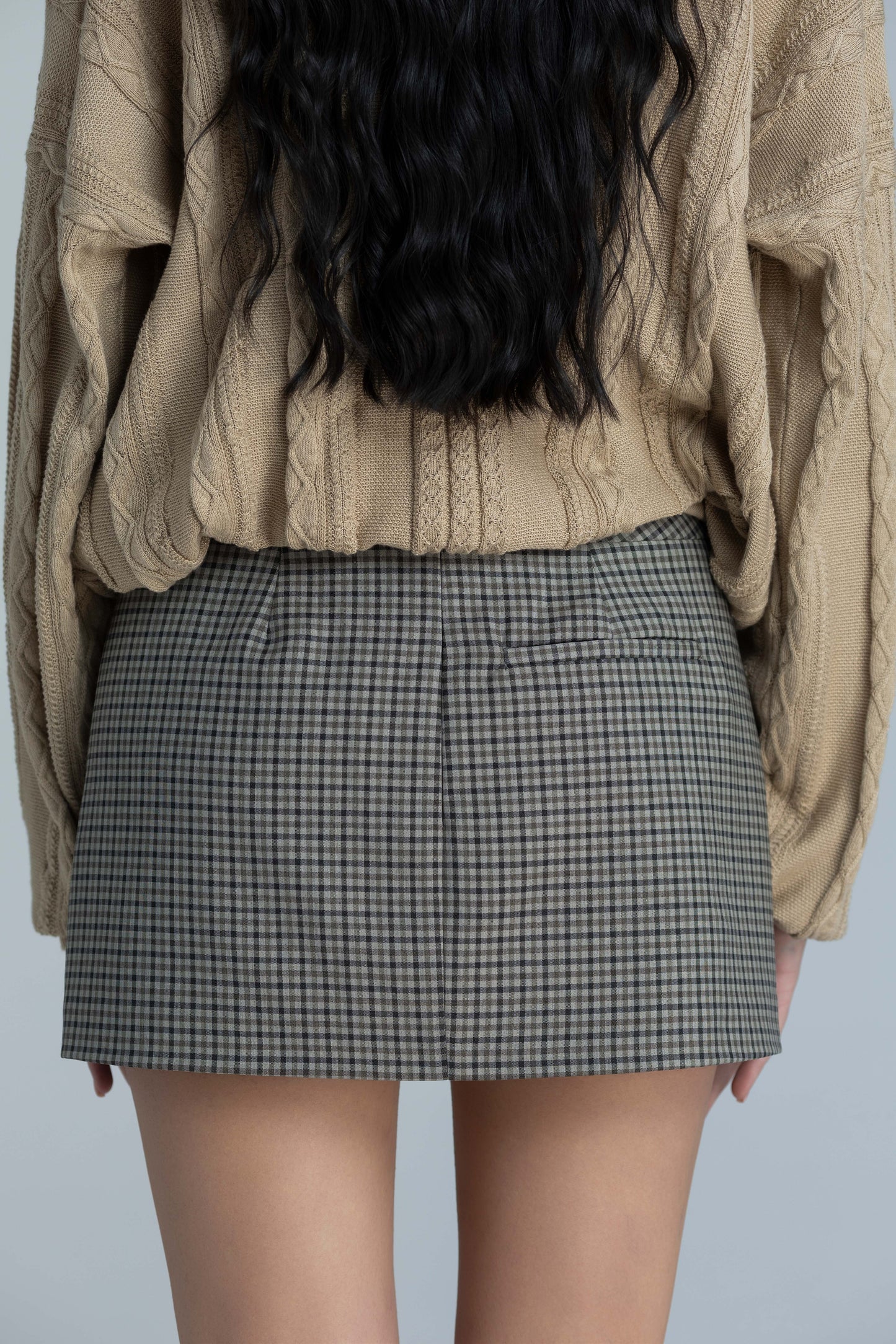 Crafted from wool and cashmere in a fine check pattern in neutral tones, this mini skirt features a mid-rise cut with a clean, structured silhouette that flatters effortlessly. Perfect for pairing with the Kaia Cotton Knit Top and the Almira Trench Coat.