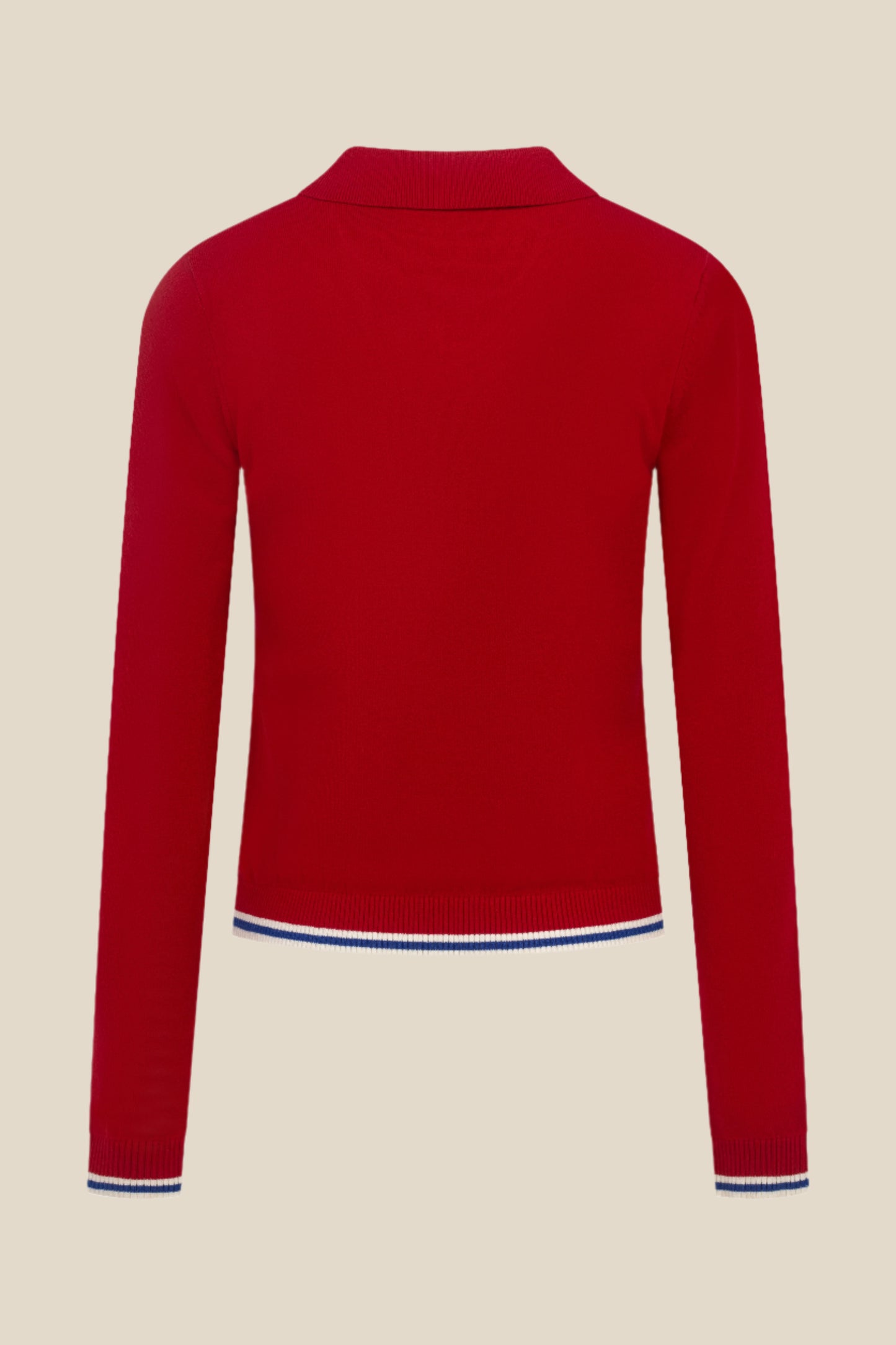 Knitted polo longsleeve in scarlet red, designed in a regular fit with a classic polo collar.