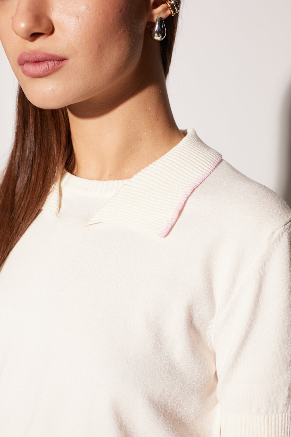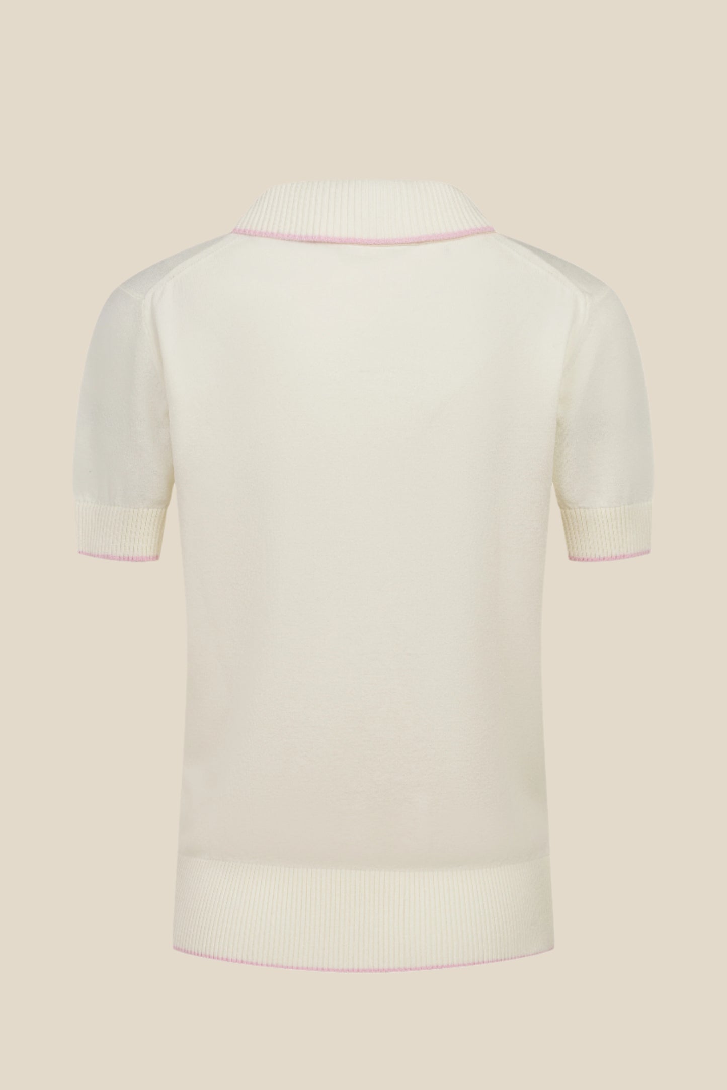Fine-knitted poloshirt with short sleeves in creamy white.