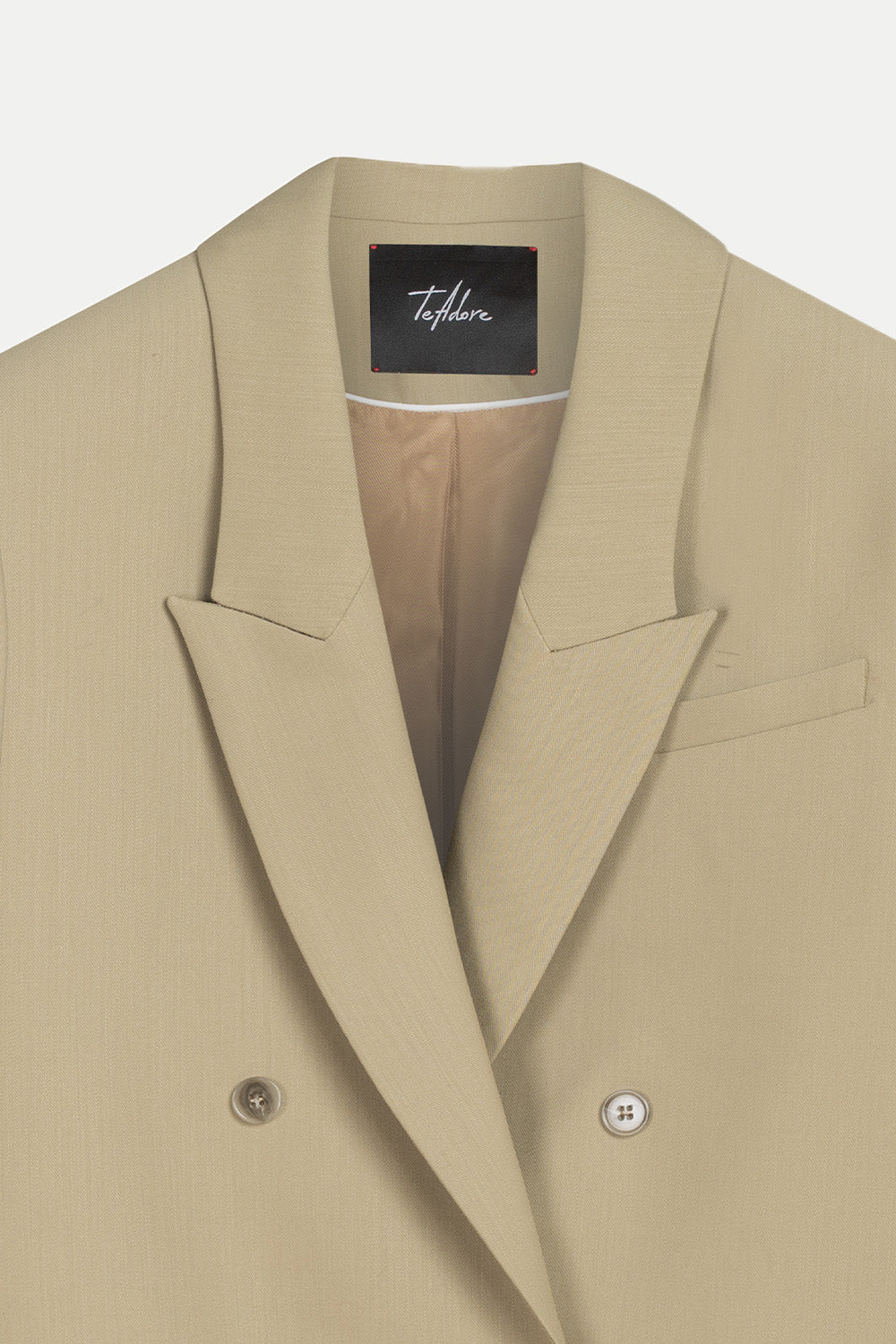 Don’t feel confined to your usual size. This piece invites you to explore new proportions and play with contemporary shapes. Match with Biliana Beige Wool Skirt.
