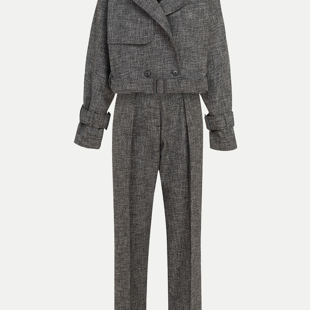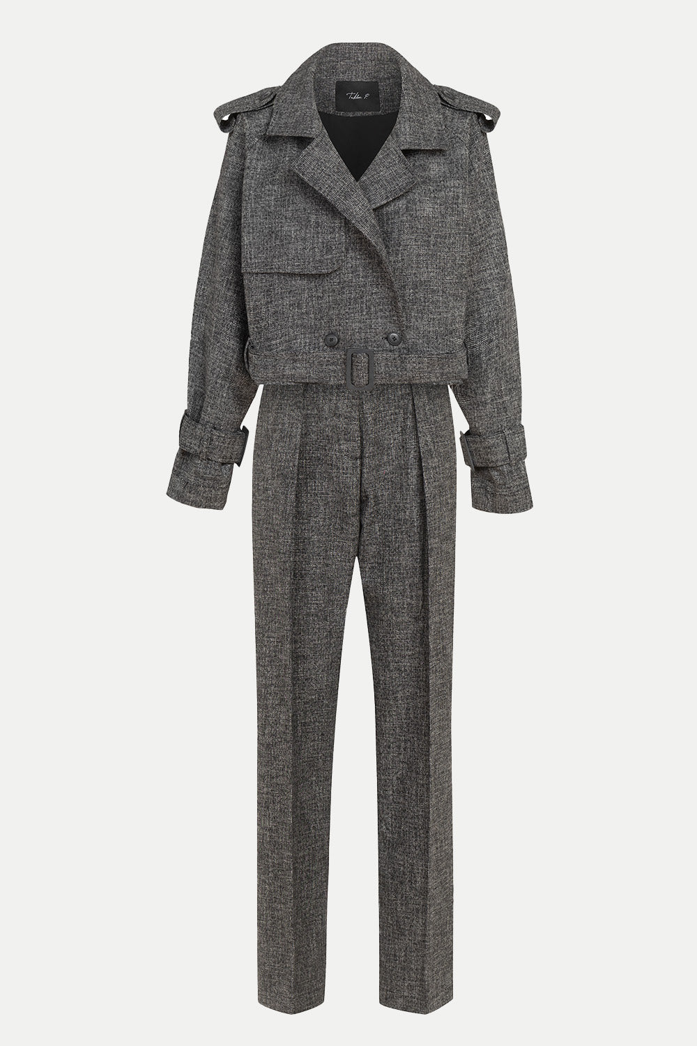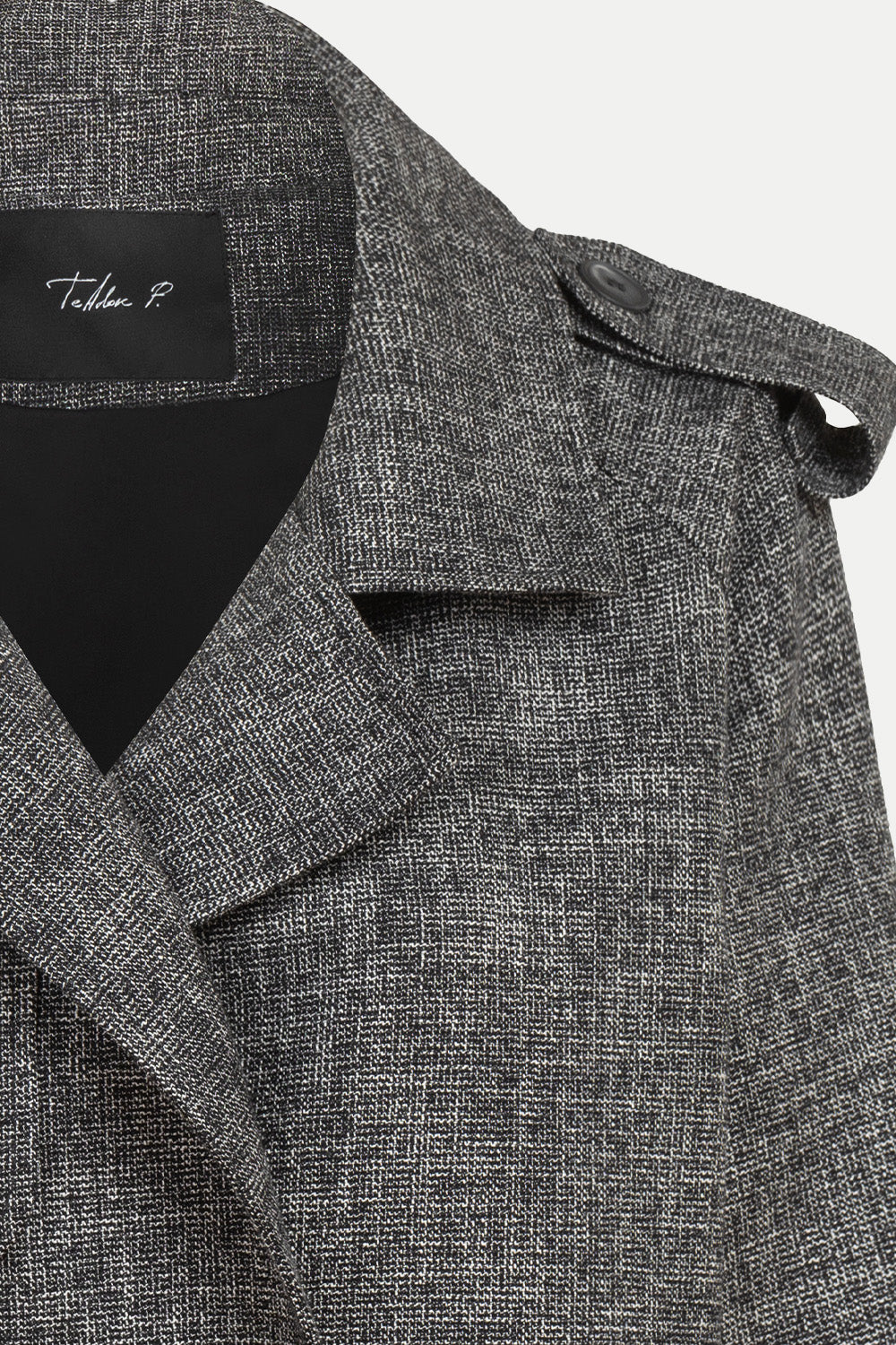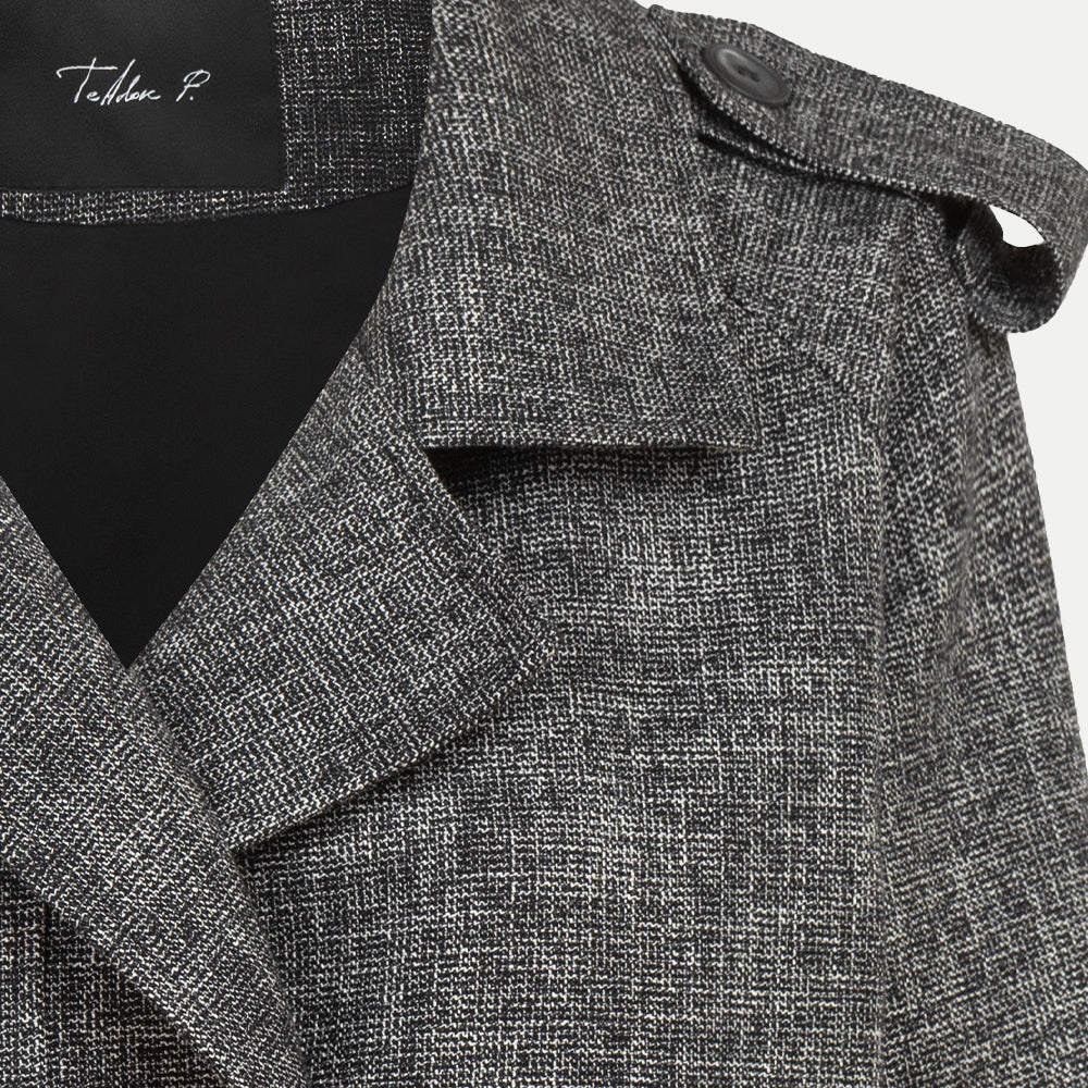 Crafted from wool basketweave fabric featuring a classic houndstooth pattern, this coat is a contemporary and chic take on classic trench styles.